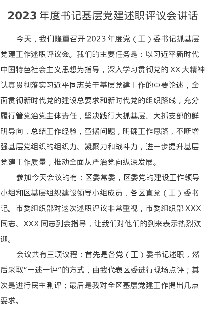 2023年度书记基层党建述职评议会讲话