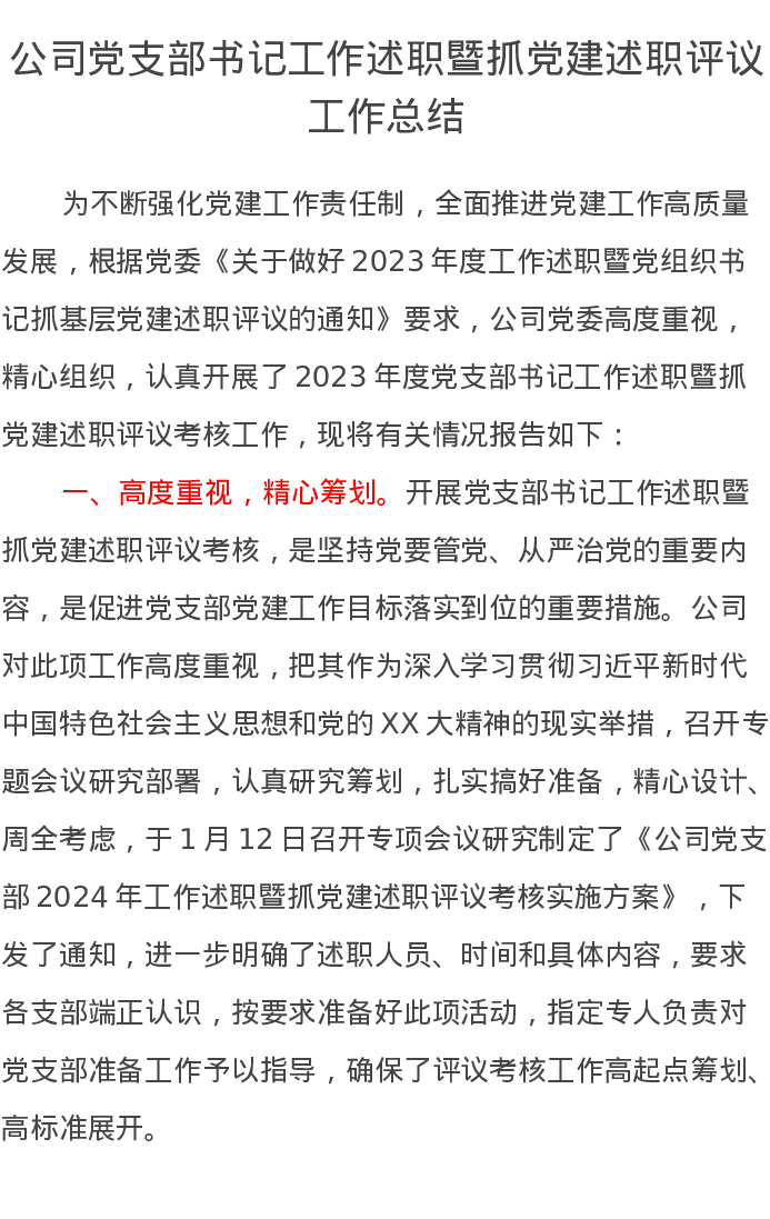 公司党支部书记工作述职暨抓党建述职评议工作总结