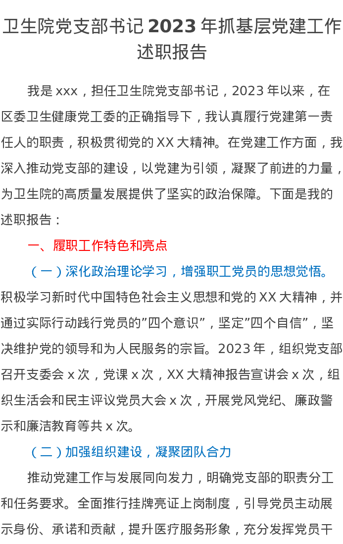 卫生院党支部书记2023年抓基层党建工作述职报告