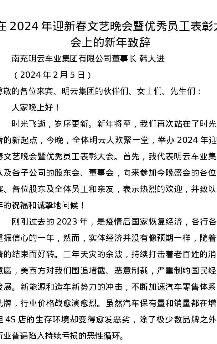 优选:在2024年迎新春文艺晚会暨优秀员工表彰大会上的新年致辞