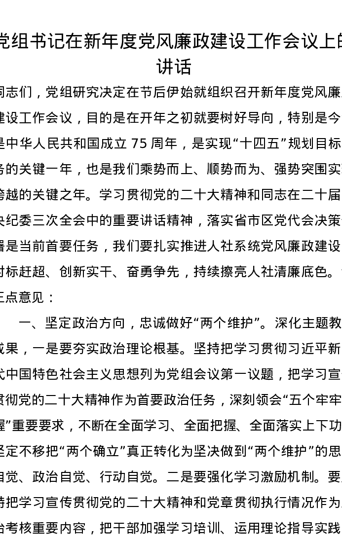 党组书记在新年度党风廉政建设工作会议上的讲话