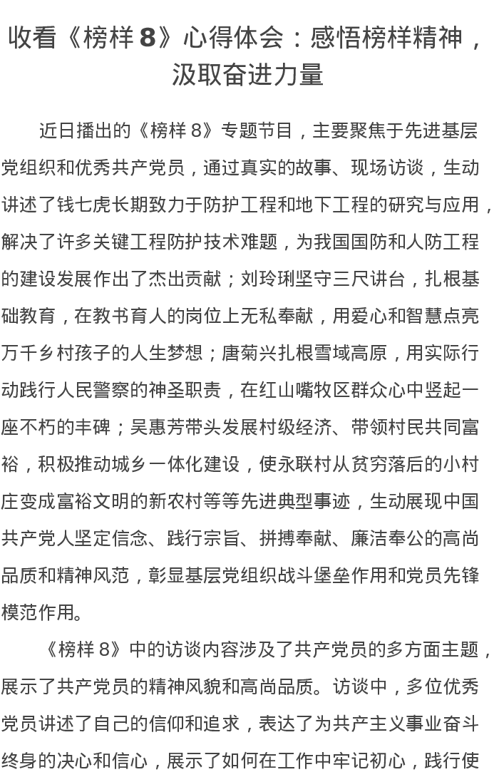 收看《榜样8》心得体会:感悟榜样精神,汲取奋进力量
