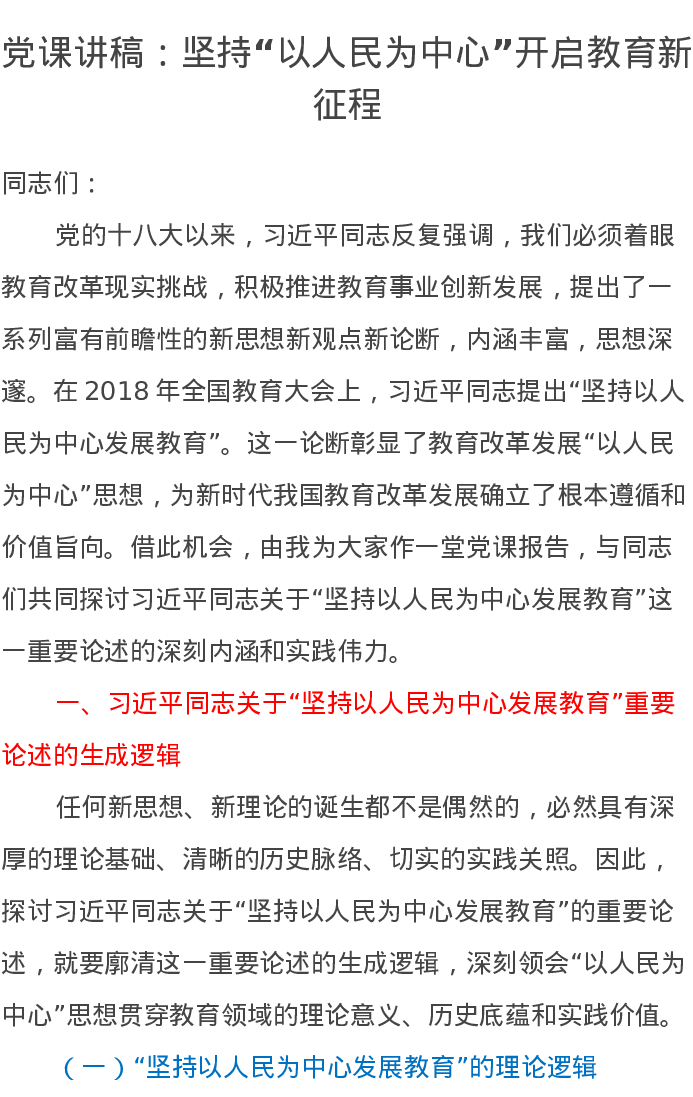 党课讲稿:坚持“以人民为中心”开启教育新征程