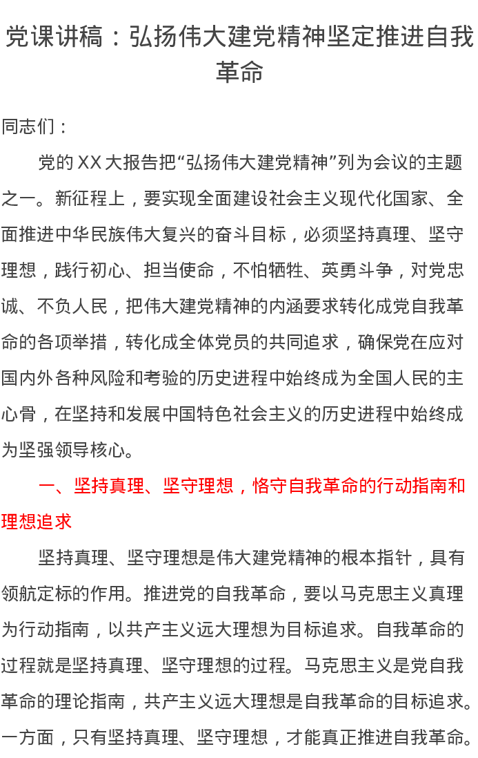 党课讲稿:弘扬伟大建党精神坚定推进自我革命