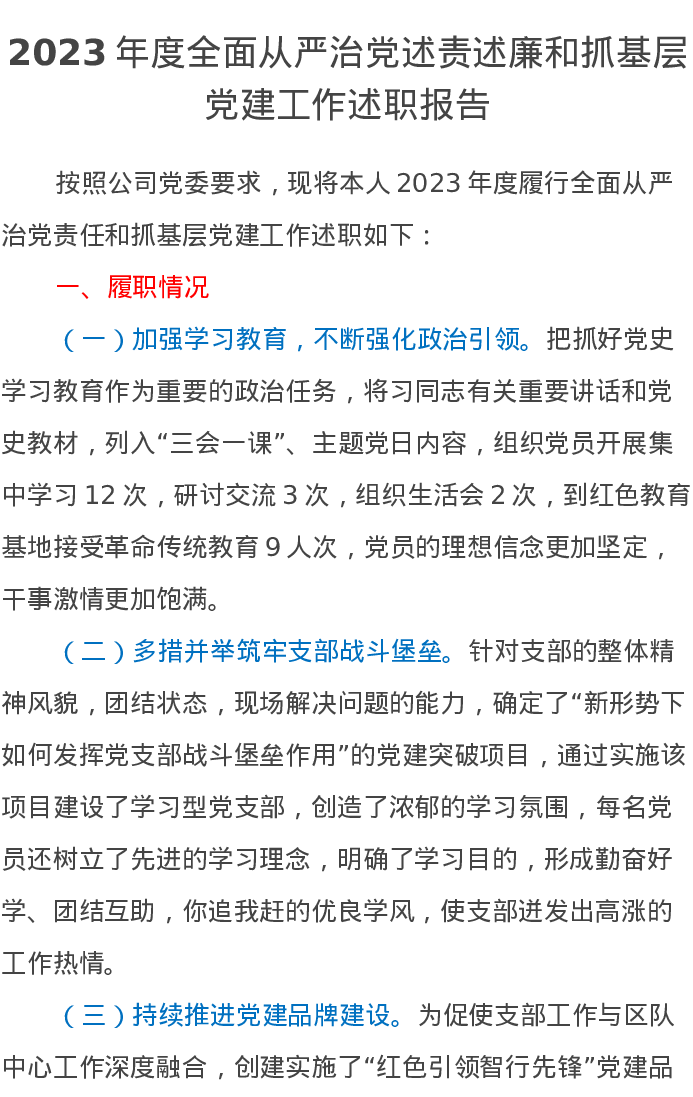 X国企(公司)领导2023年度全面从严治党述责述廉和抓基层党建工作述职报告6