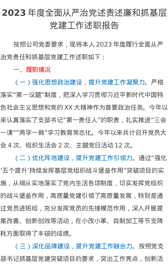 X国企(公司)领导2023年度全面从严治党述责述廉和抓基层党建工作述职报告7