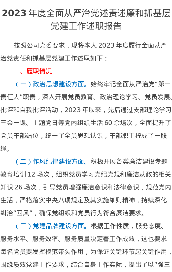 X国企(公司)领导2023年度全面从严治党述责述廉和抓基层党建工作述职报告8