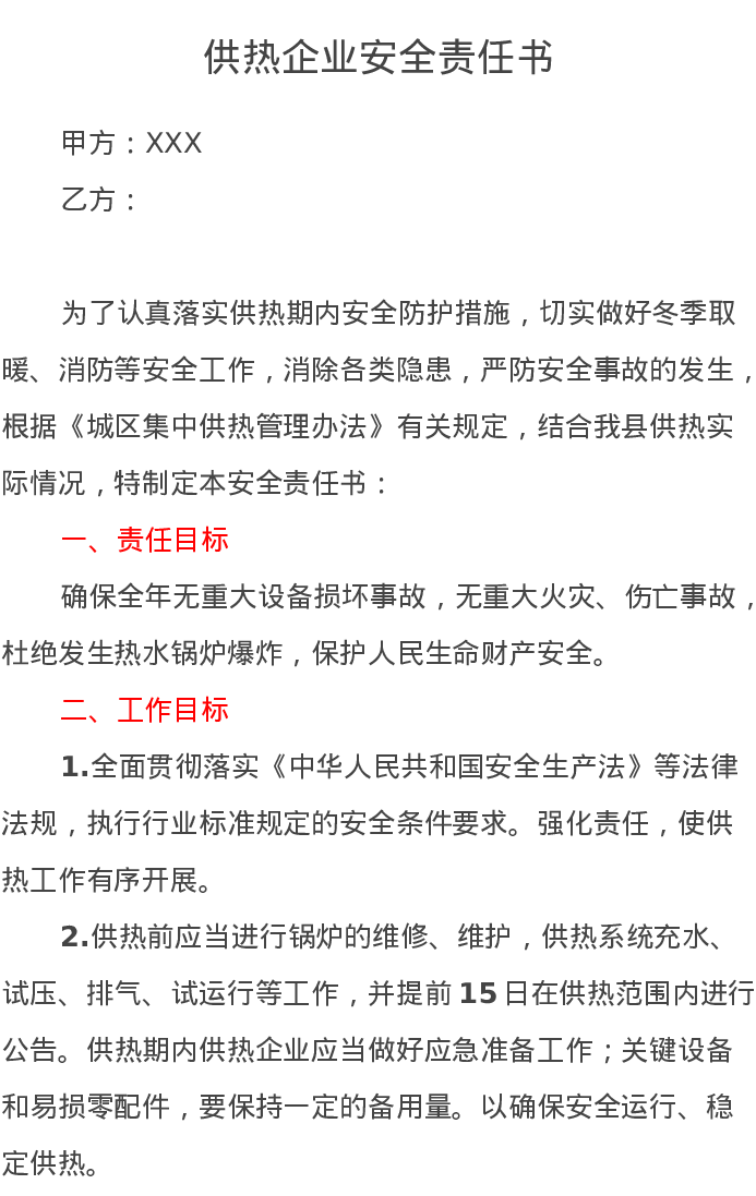 供热企业安全责任书