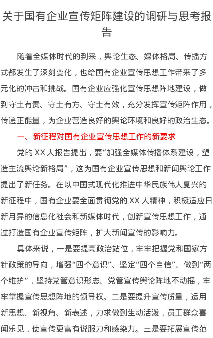 关于国有企业宣传矩阵建设的调研与思考报告2