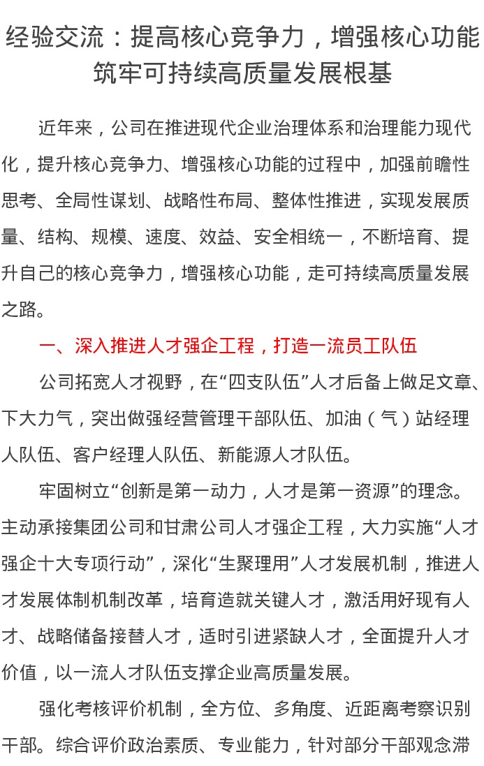 国企经验交流:提高核心竞争力,增强核心功能,筑牢可持续高质量发展根基