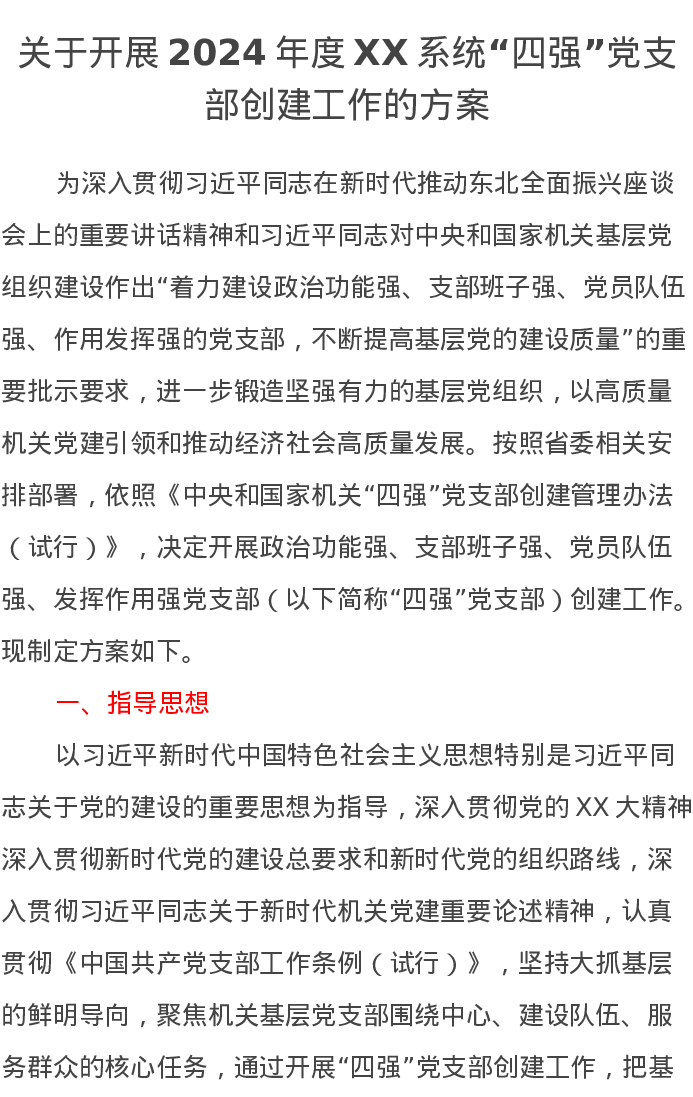 关于开展2024年度XX系统“四强”党支部创建工作的方案