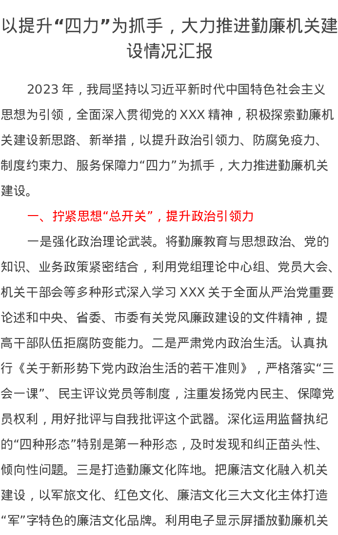 以提升“四力”为抓手,大力推进勤廉机关建设情况汇报