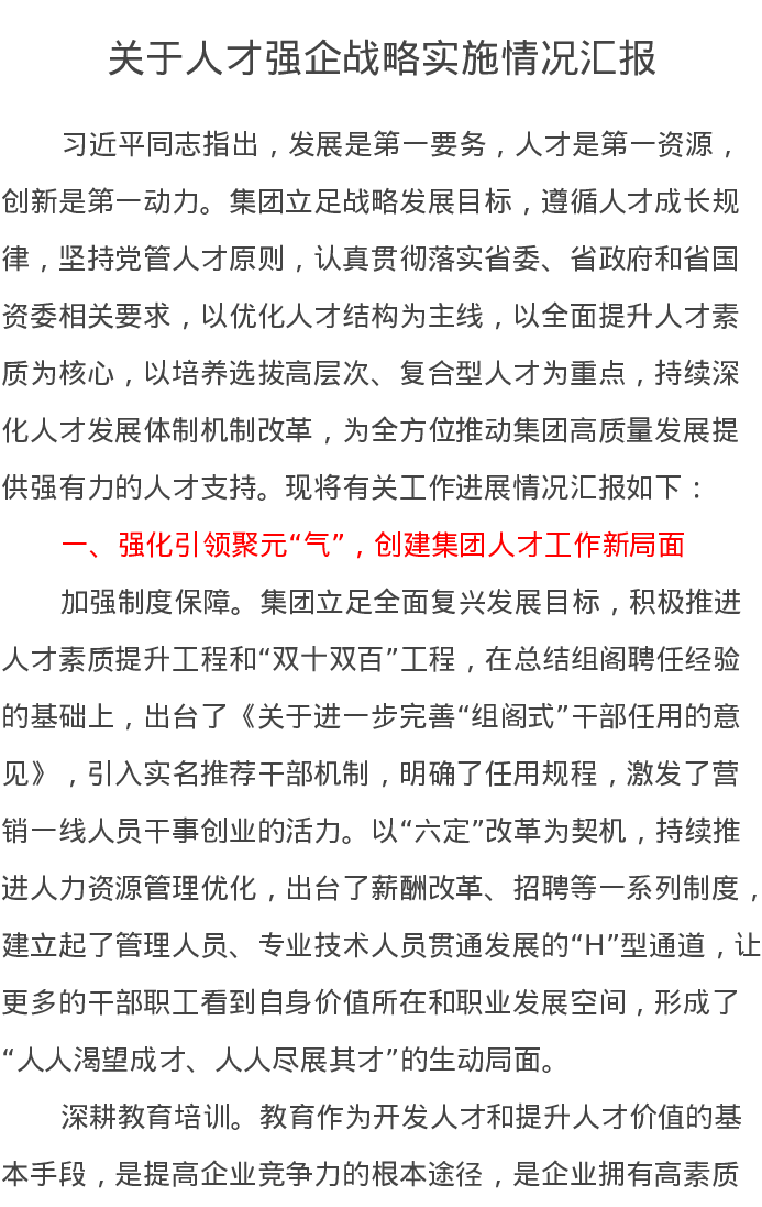 关于人才强企战略实施情况汇报