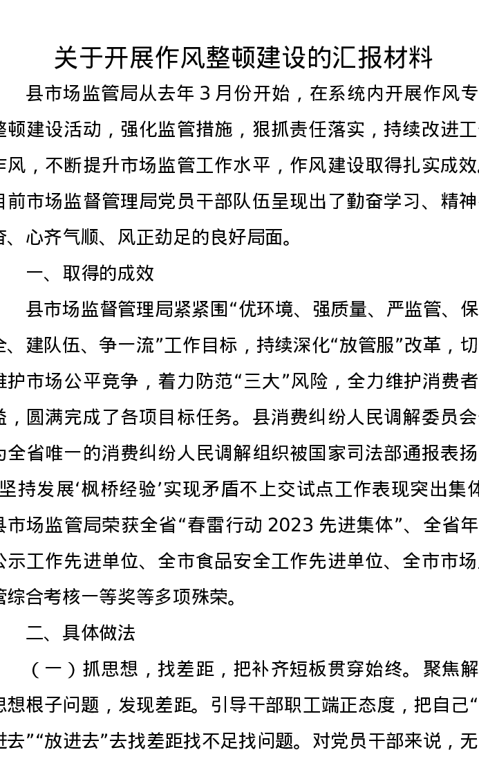 关于开展作风整顿建设的汇报材料