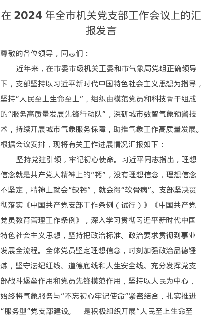 在2024年全市机关党支部工作会议上的汇报发言
