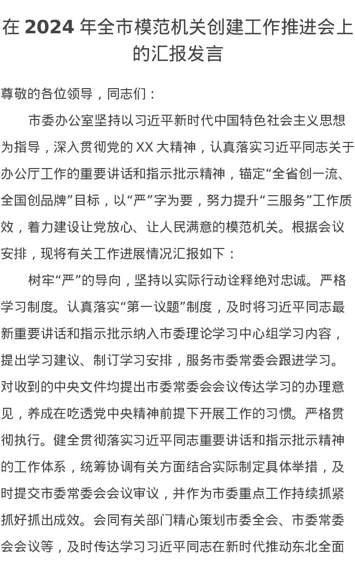 在2024年全市模范机关创建工作推进会上的汇报发言2