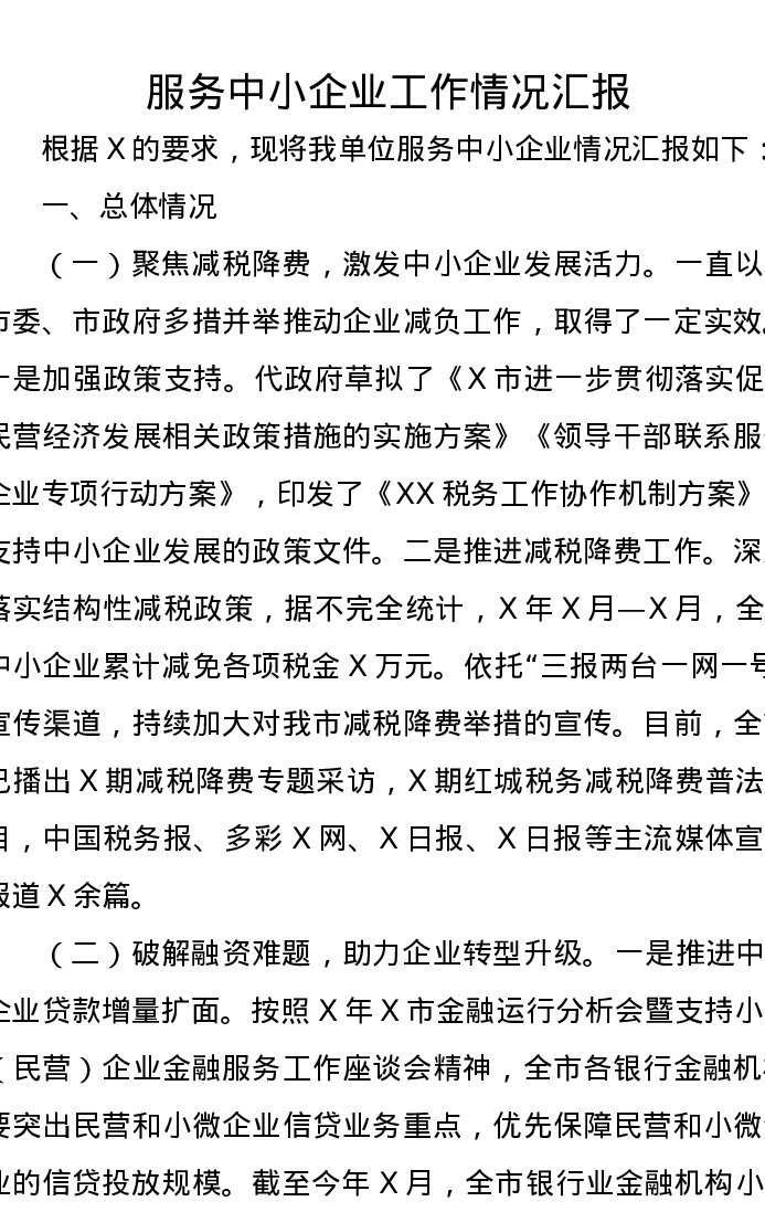 服务中小企业工作情况汇报
