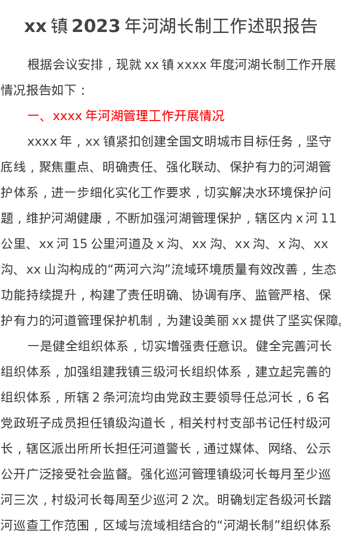 xx镇2023年河湖长制工作述职报告