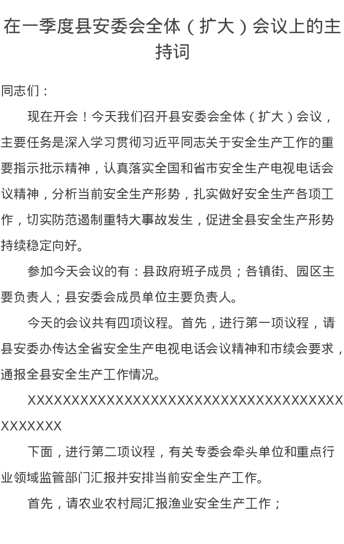 在一季度县安委会全体(扩大)会议上的主持词