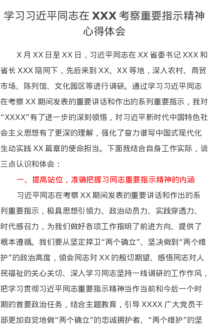 学习习近平总书记在XXX考察重要指示精神心得体会
