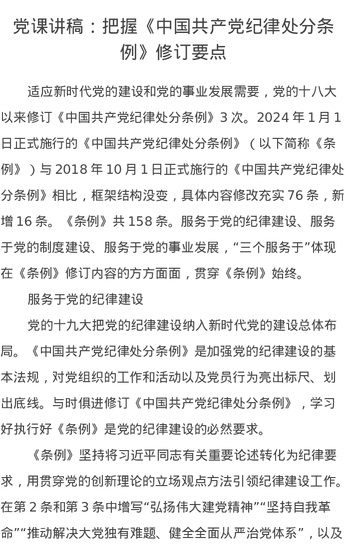 党课讲稿:把握《中国共产党纪律处分条例》修订要点