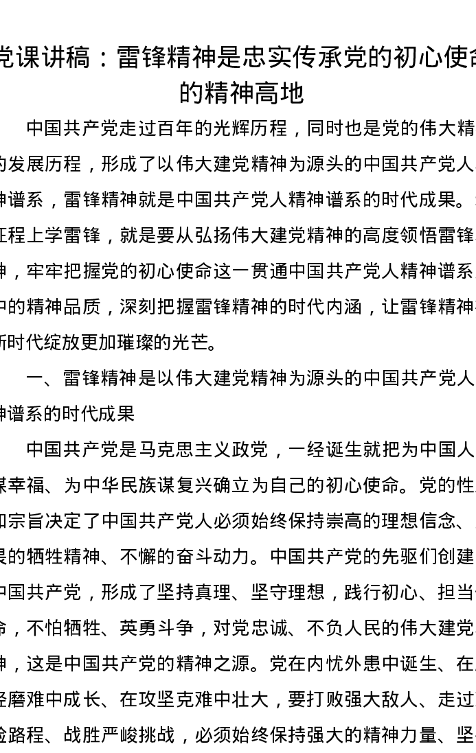 党课讲稿:雷锋精神是忠实传承党的初心使命的精神高地