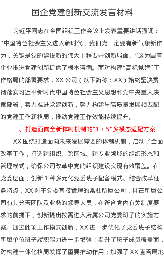 国企党建创新交流发言材料