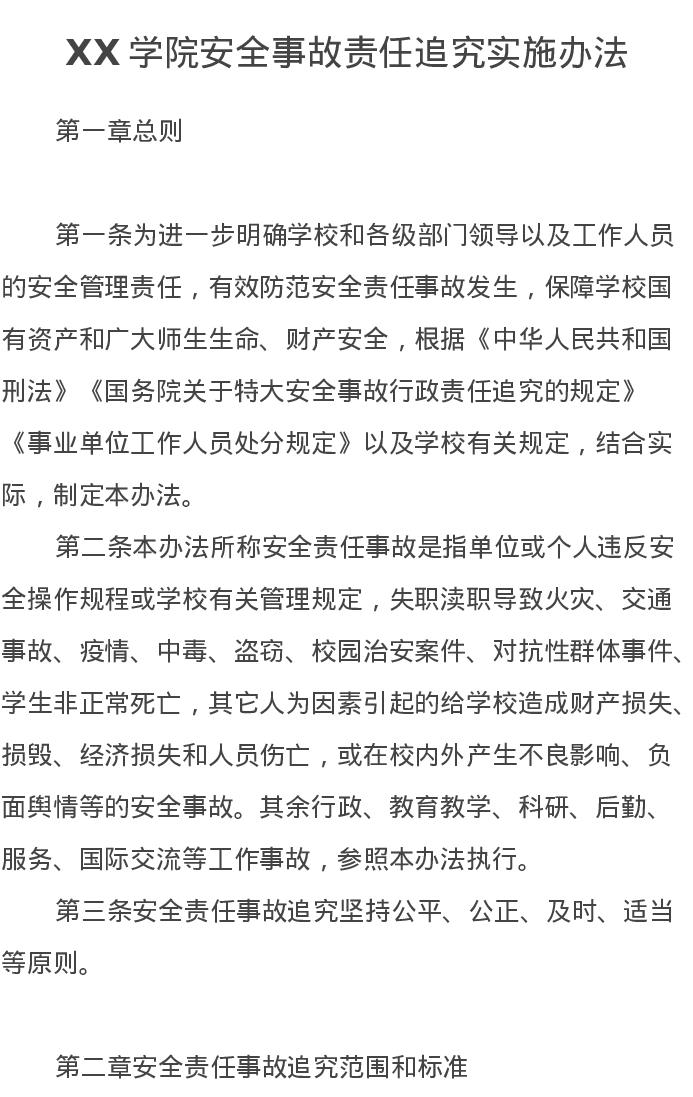 XX学院安全事故责任追究实施办法