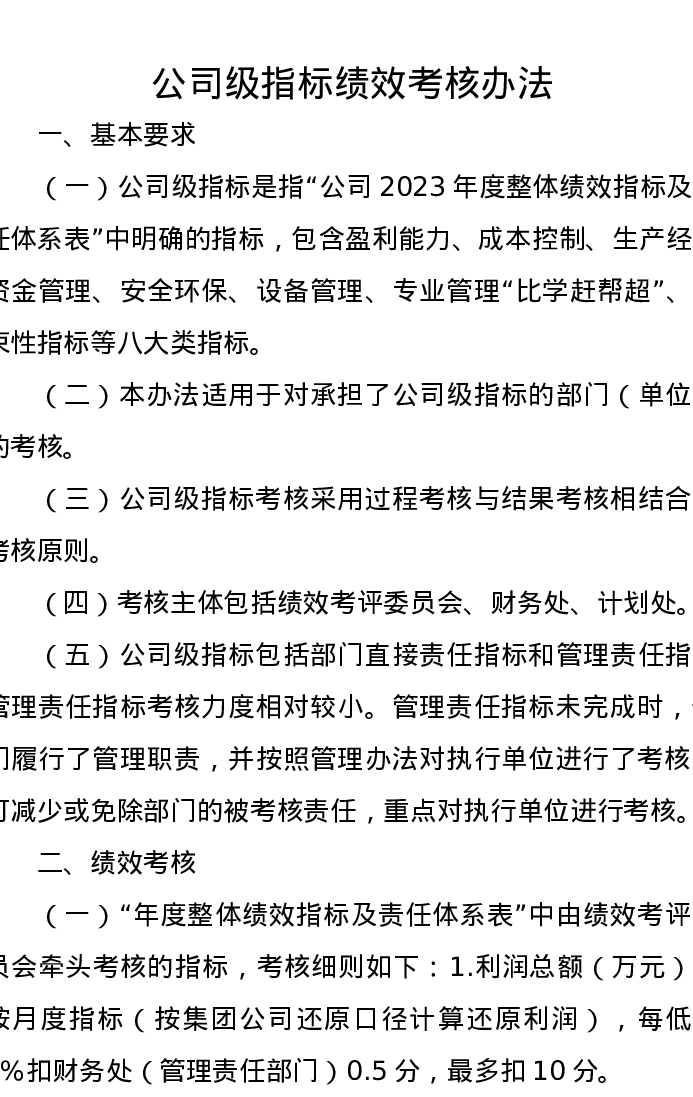 公司级指标绩效考核办法