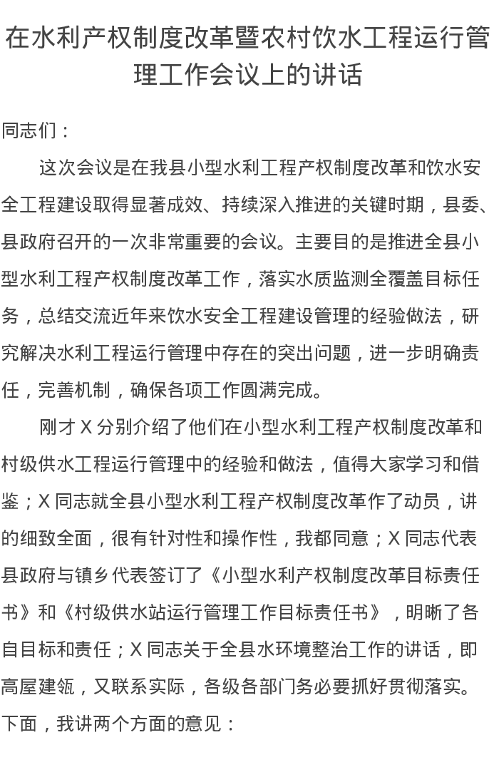 在水利产权制度改革暨农村饮水工程运行管理工作会议上的讲话