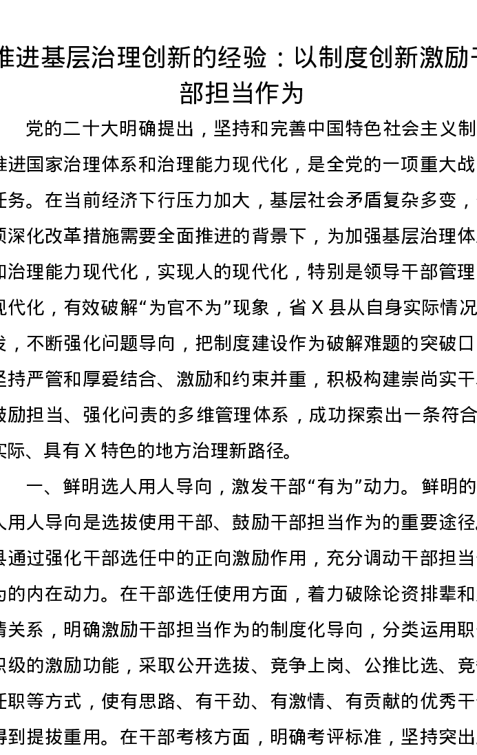 推进基层治理创新的经验:以制度创新激励干部担当作为