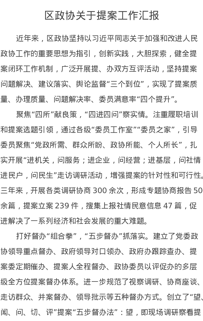 区政协关于提案工作汇报