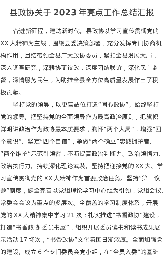 县政协关于2023年亮点工作总结汇报