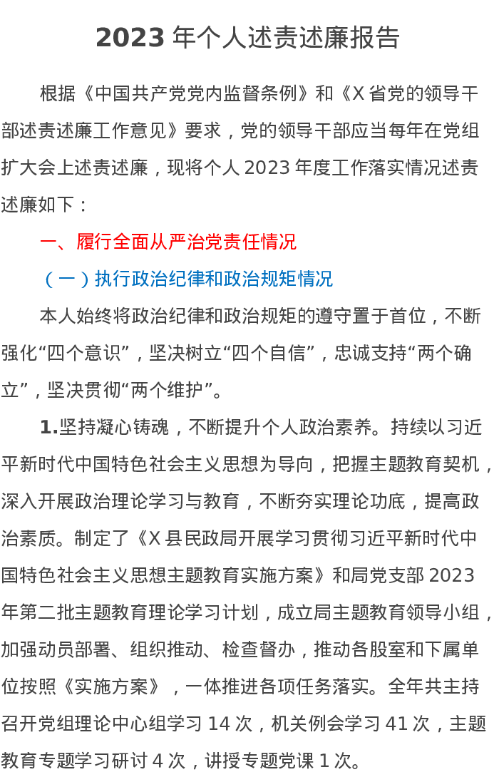 2023年个人述责述廉报告(执行政治纪律和政治规矩、履行管党治党、党风廉政建设和反腐败工作、执行廉洁纪律)
