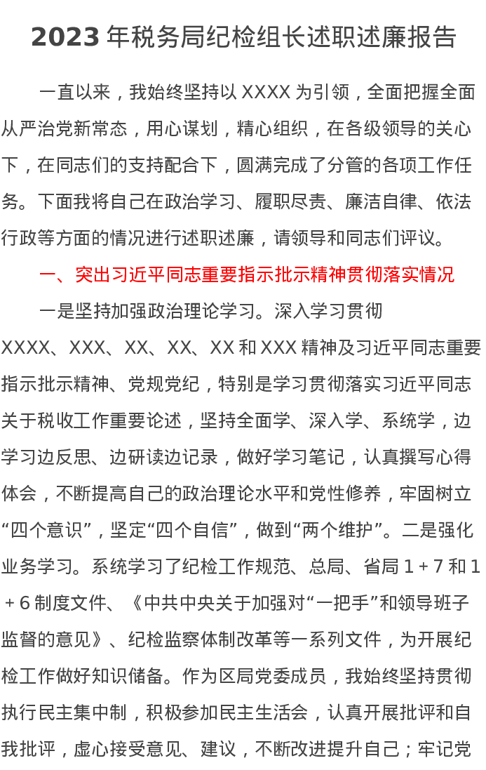 2023年税务局纪检组长述职述廉报告