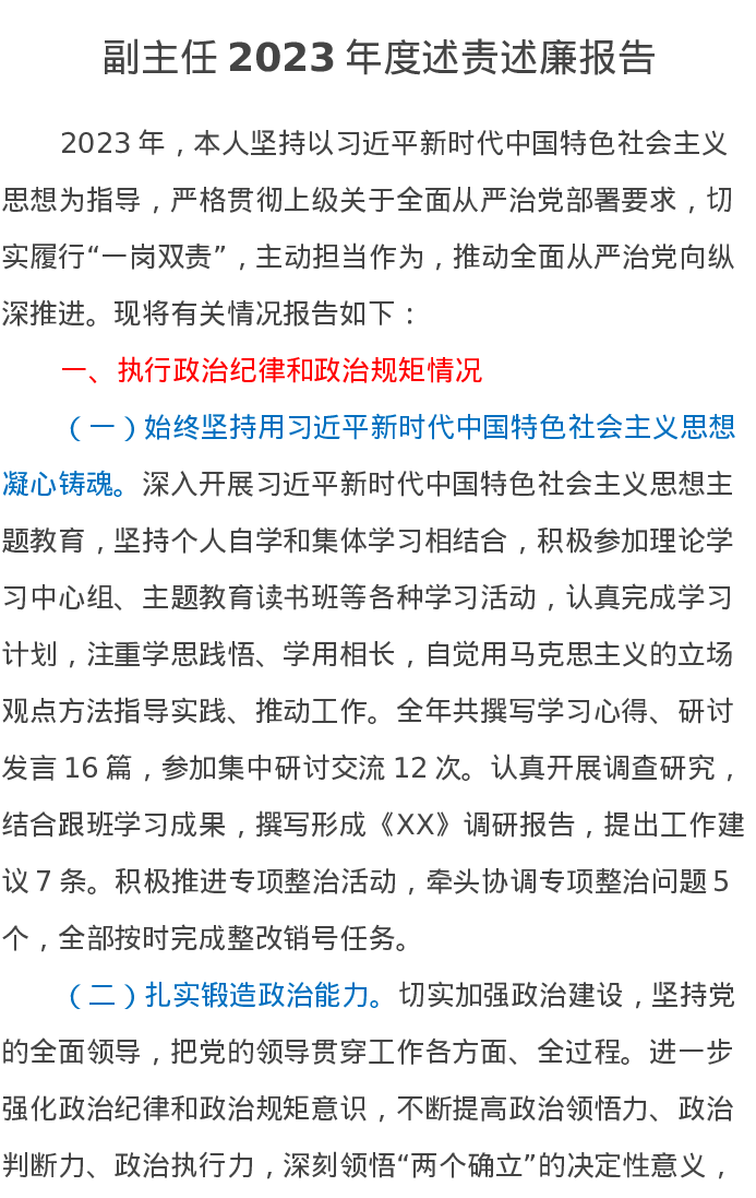 副主任2023年度述责述廉报告