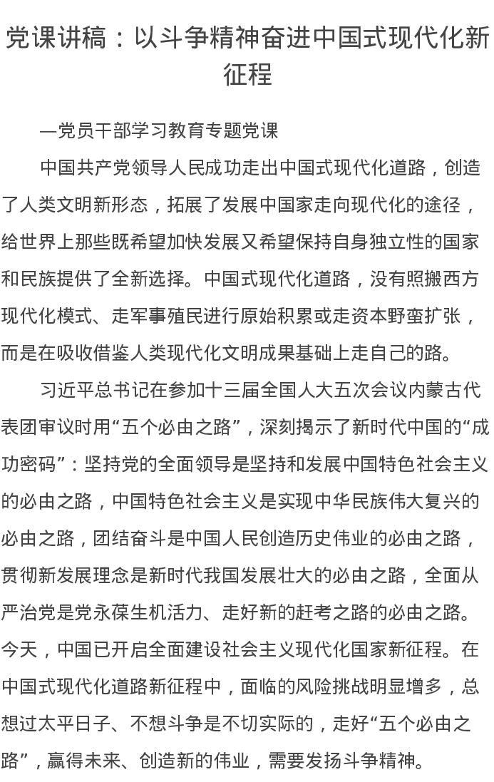 党课讲稿:以斗争精神奋进中国式现代化新征程