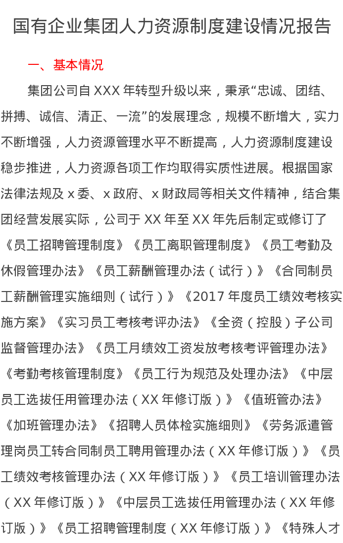 国有企业集团人力资源制度建设情况报告