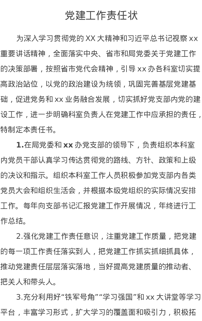 党建工作责任状