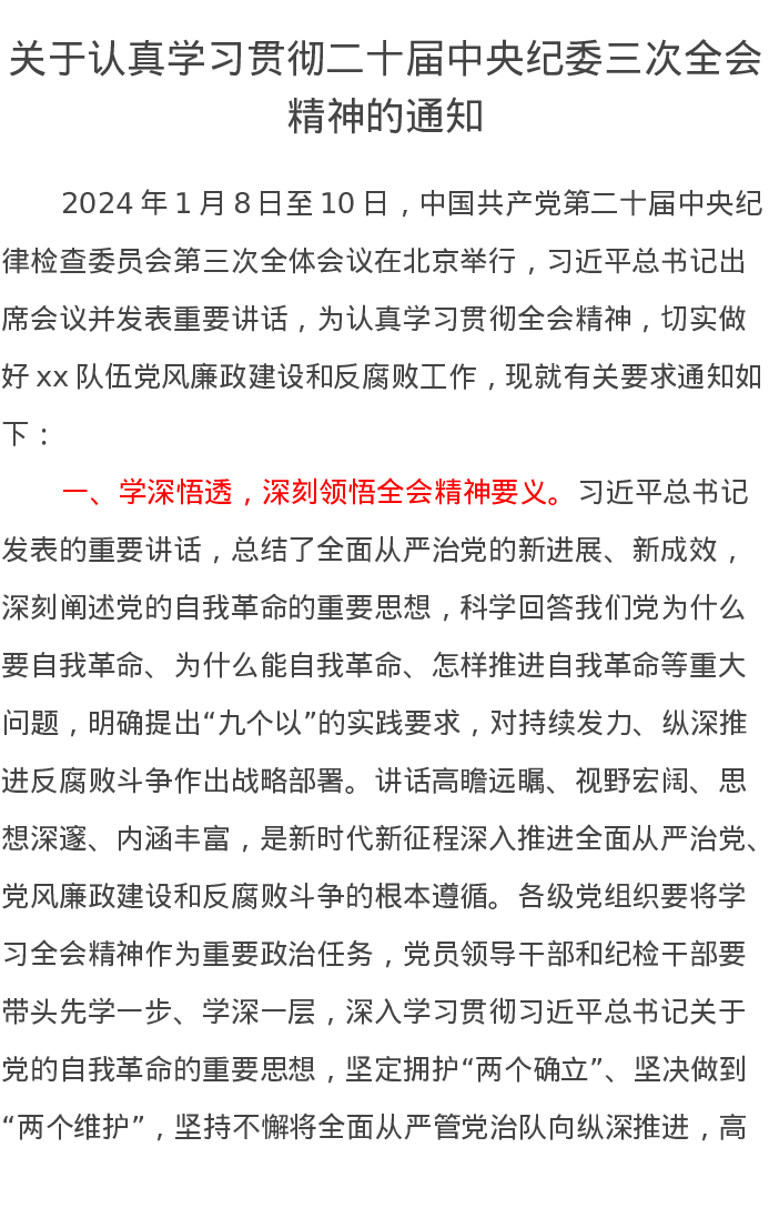 关于认真学习贯彻二十届中央纪委三次全会精神的通知