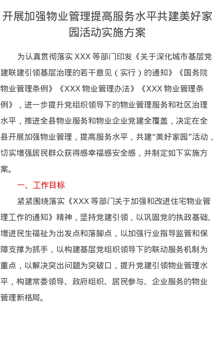 开展加强物业管理提高服务水平共建美好家园活动实施方案