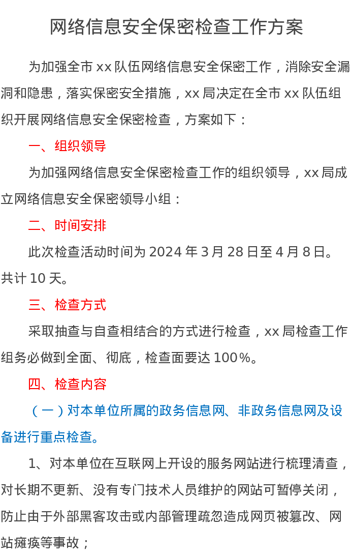 网络信息安全保密检查工作方案