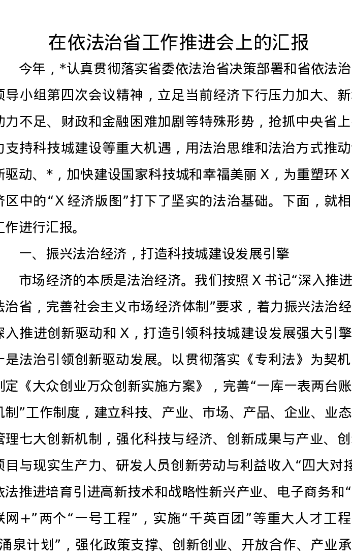 在依法治省工作推进会上的汇报