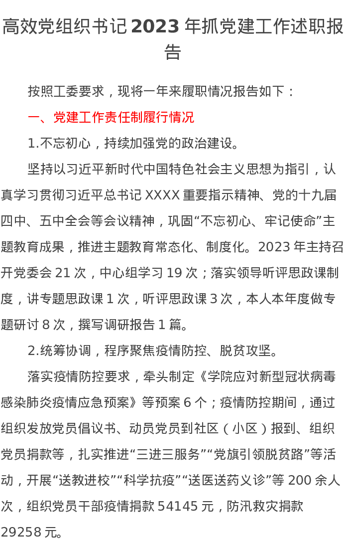 高效党组织书记2023年抓党建工作述职报告