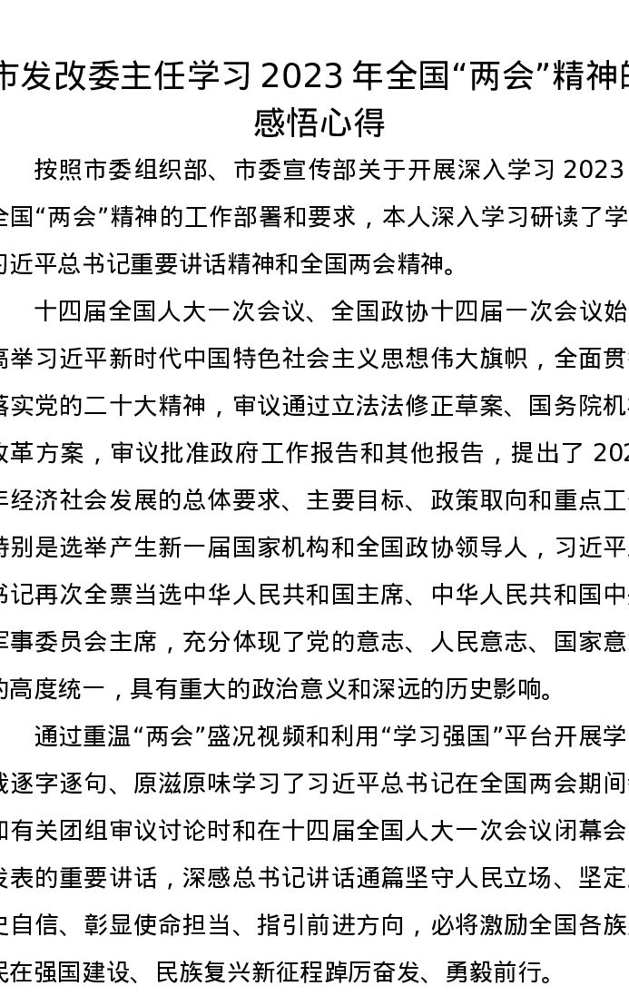 市发改委主任学习2023年全国“两会”精神的感悟心得