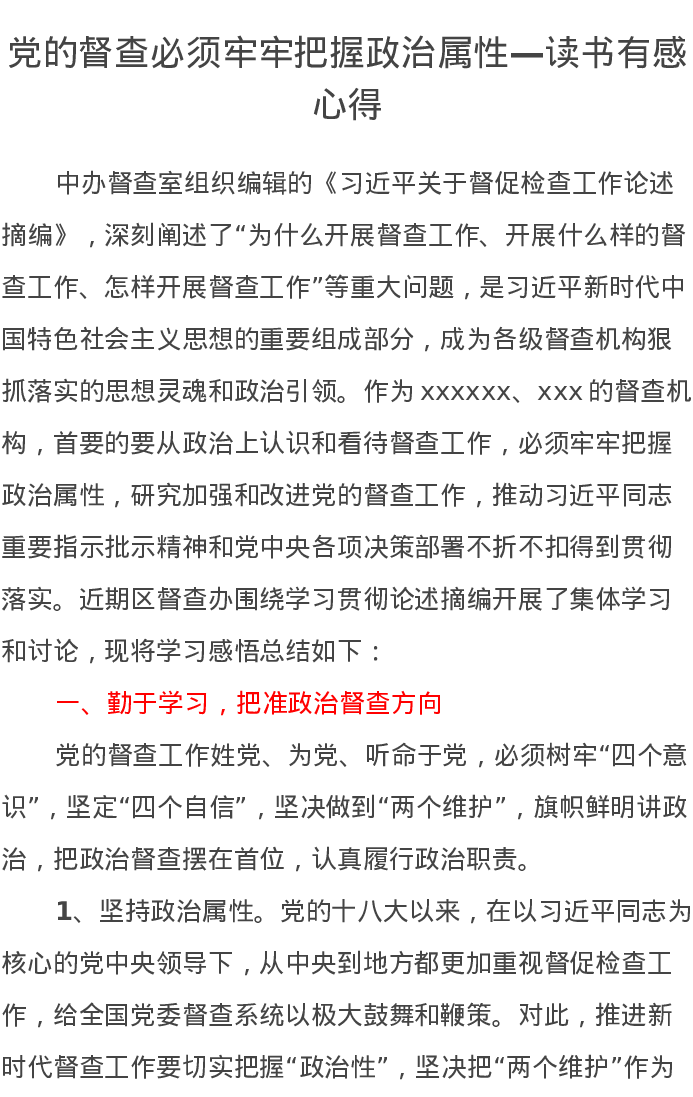 党的督查必须牢牢把握政治属性—读书有感心得