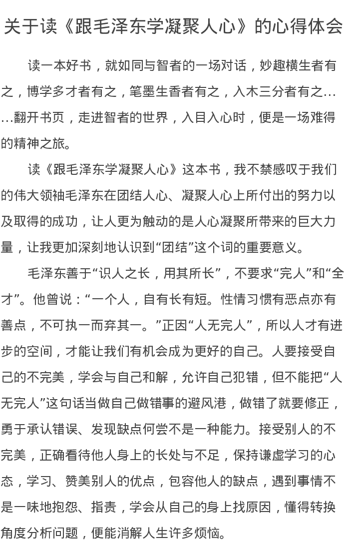 关于读《跟毛泽东学凝聚人心》的心得体会