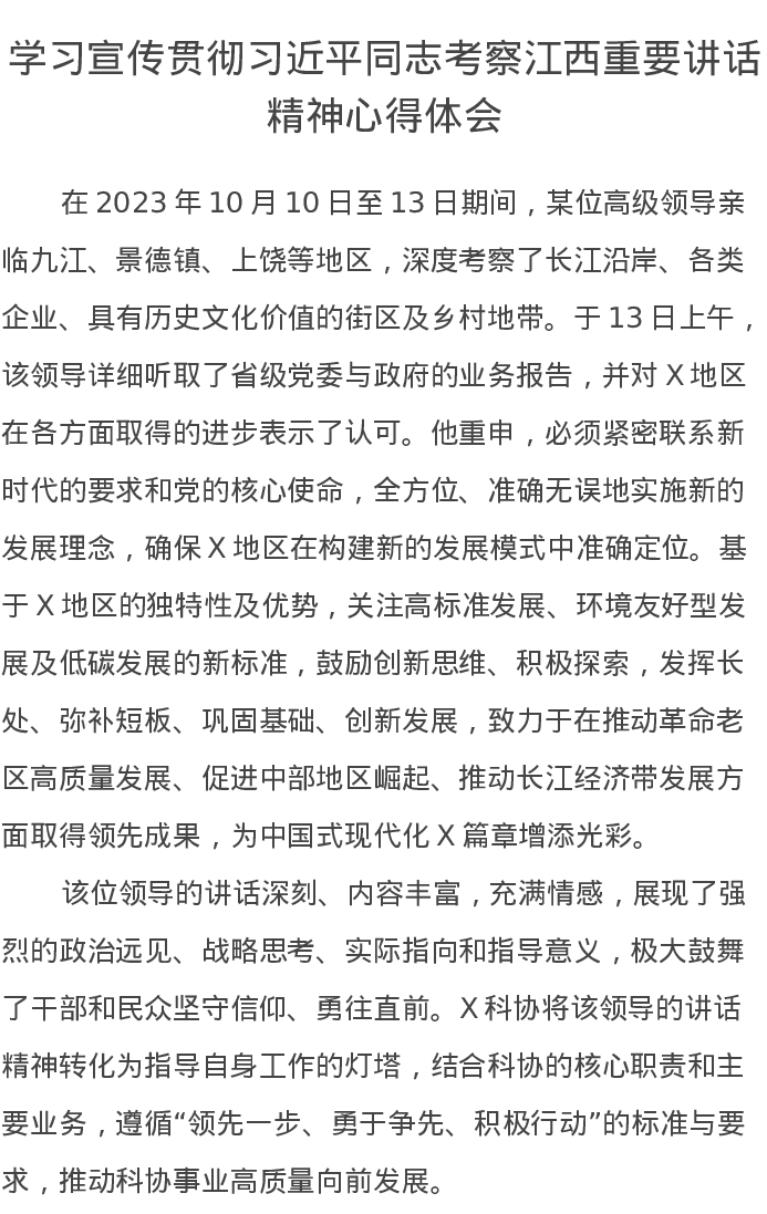 学习宣传贯彻习近平总书记考察江西重要讲话精神心得体会