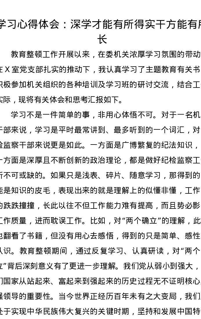 学习心得体会:深学才能有所得实干方能有所长