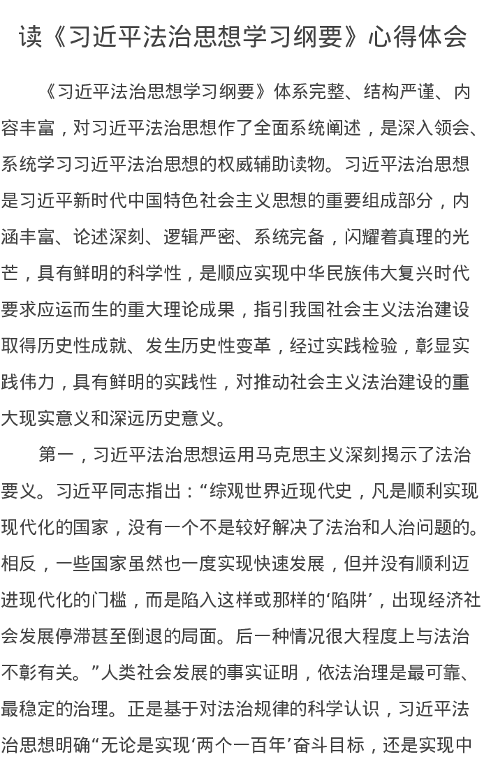 读《习近平法治思想学习纲要》心得体会